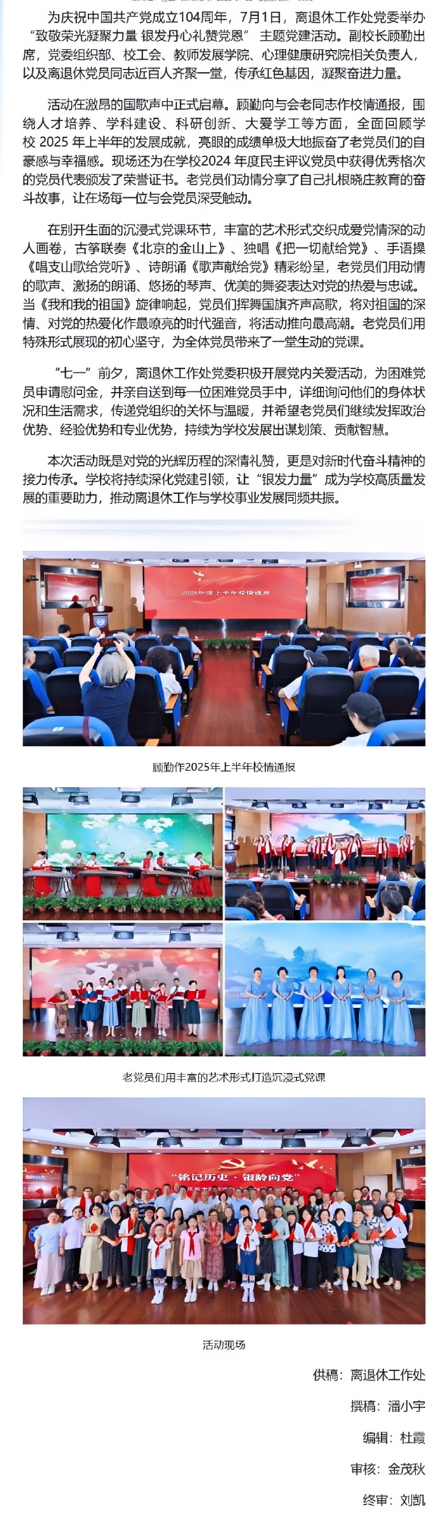 致敬荣光凝聚力量 银发丹心礼赞党恩——离退休工作处党委举办庆祝中国共产党成立104周年系列活动
